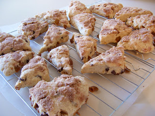I made more scones. I think we're addicted. This time- since I'm married to a chocoholic- I made part of the batch with chocolate chips also. He was very excited.