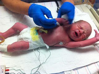 Our first night was crazy. Each boy took a turn being fussy until the next night feeding which meant that we didn't sleep from 12-6:30! Thankfully they both were sleeping and content between 6:30 and 9 so we got a nap in there. It hasn't been that bad since, but it was definitely an awakening for us. And a new sort of "welcome" to parenthood.